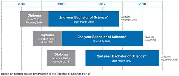 蒙纳士大学理科本科的入学时间仅在每年的第一学期。而通过蒙纳士学院理科快捷课程的学习后,你可以自由选择合适的你入学时间,即在每年第一学期和第二学期都可申请理科本科的入学。快捷课程每年有三个入学时间供选择,分别是2月,6月以及10月。