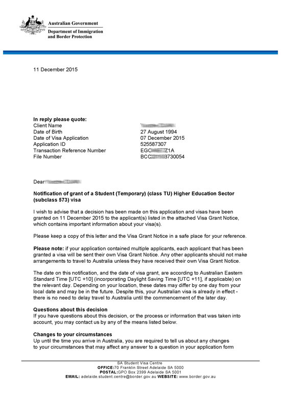 恭喜王同学澳洲签证获批