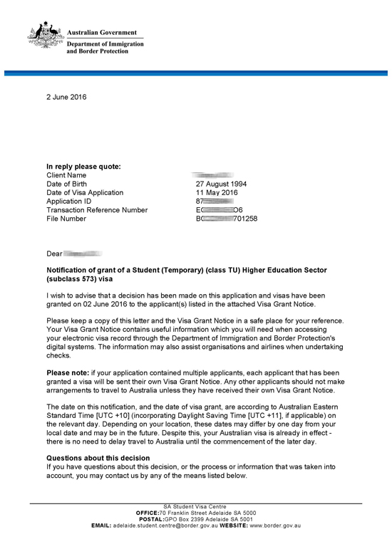 恭喜辛同学澳洲签证获批